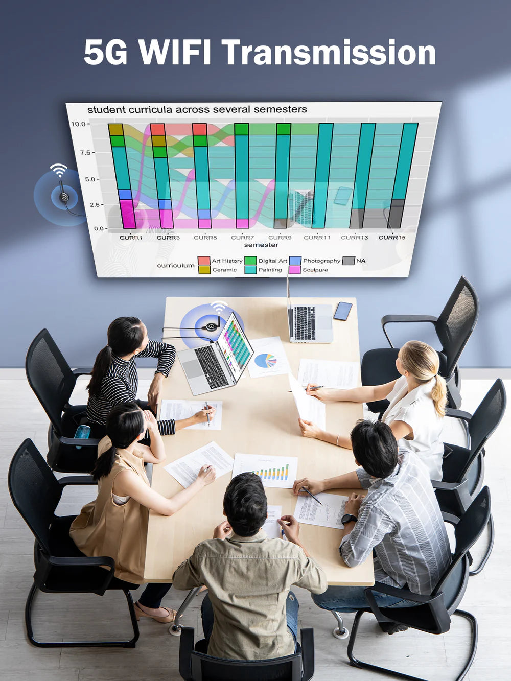 Wide Compatibility This screen adapter can quickly transmit any audio and video content from video devices such as computers, DVDs, set-top boxes, etc. to a larger screen through the wireless HDMI transmitter port. It is widely used for watching movies, sports Events, games, multimedia education, business meetings, family entertainment and other activities
