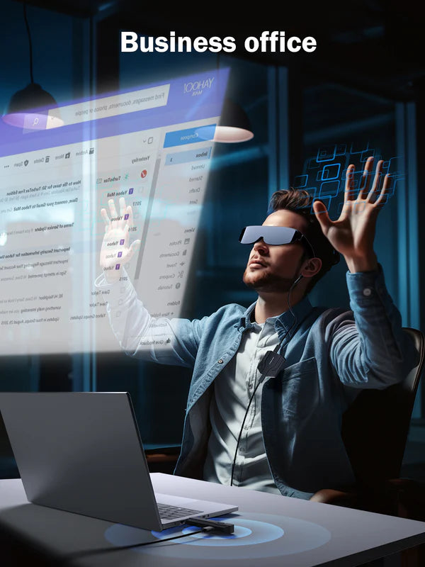 Connect your laptop (P20 TX) via wireless signal to read emails using AR glasses, plug in, click and wirelessly cast anything from your favorite mobile device. The wireless HDMI transmitter and receiver come pre-paired at the factory, making it a plug-and-play device without the need for additional apps, Bluetooth or Wifi.