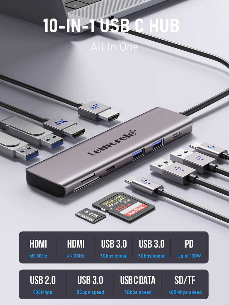 Lemorele USB-C 10-in-1 docking station 【TC91】Lemorele kenya