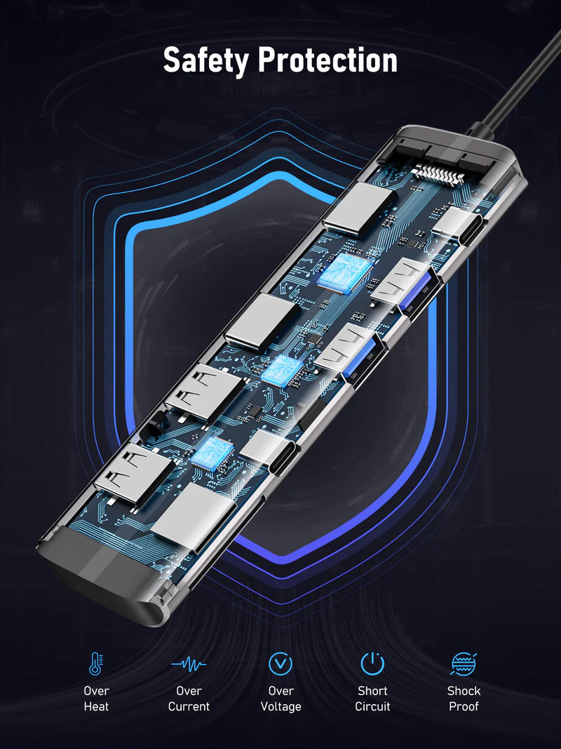 4. Equipped with 5 USB interfaces, mobile phones, tablets, and hard drives can easily transfer data through the USB-C port.