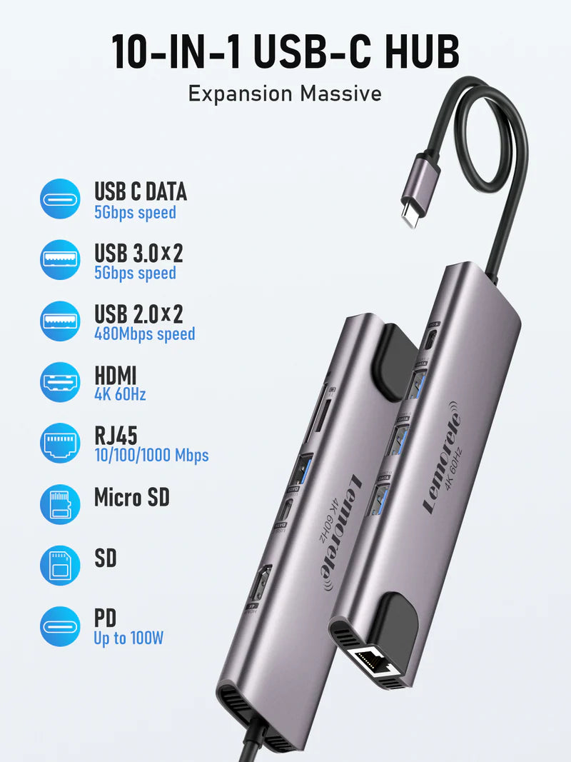 LEMORELE 10-IN-1 USB C Docking Station - Massively Expand Your USB-C Device!