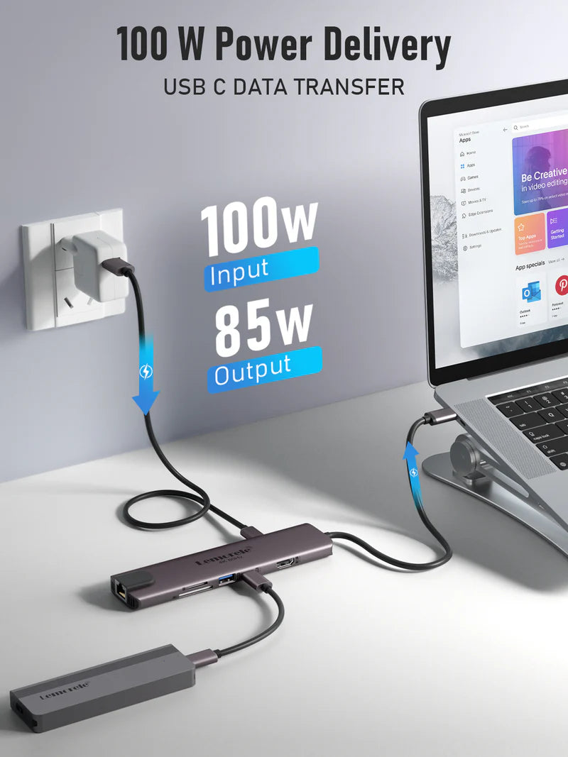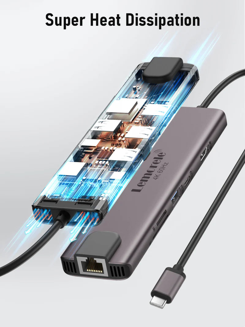 Lemorele USB C Hub increases your productivity by expanding the female USB C port on your devices to multiple possibilities of connectivity.